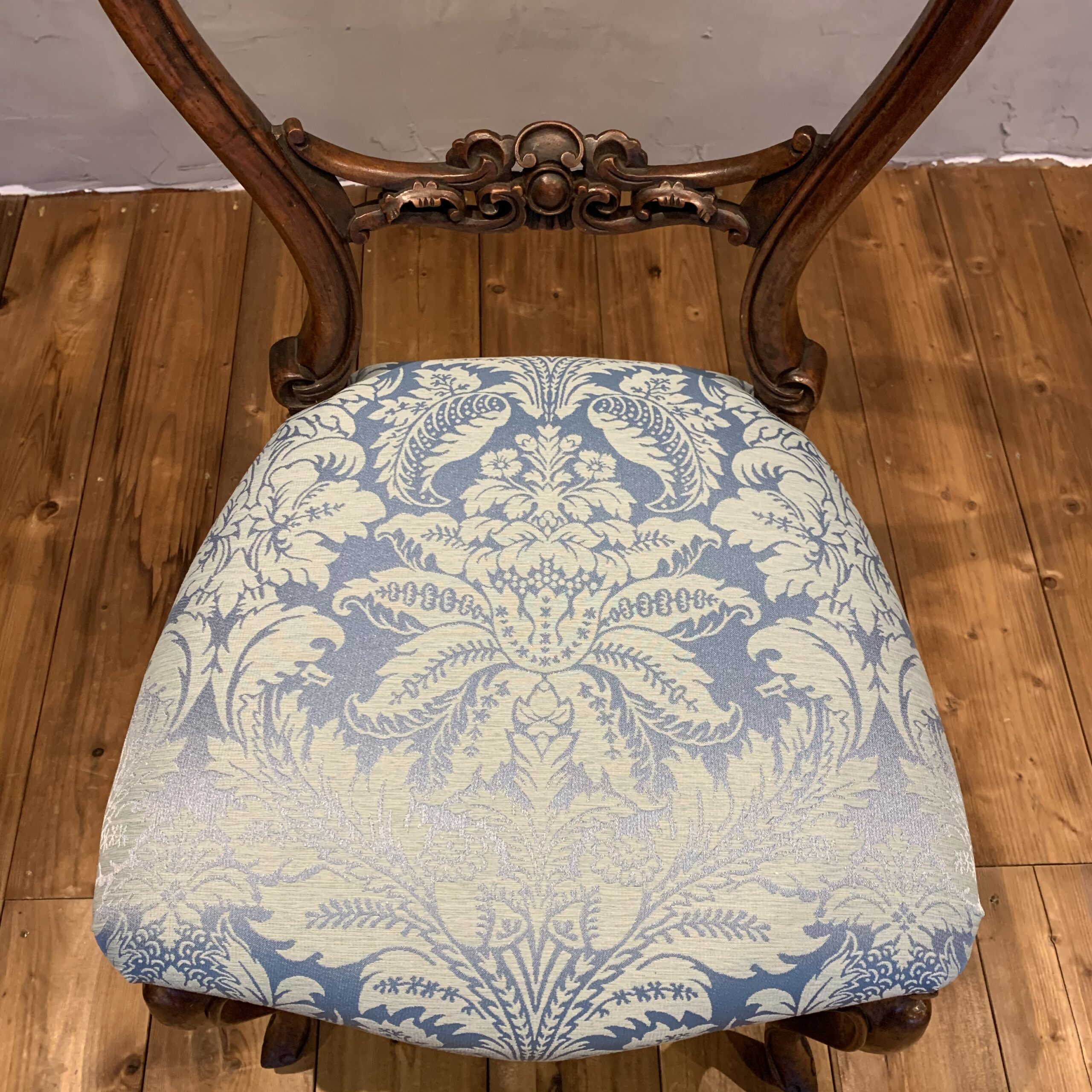 バルーンバックチェアの張替をしました。 川島織物さんの布地を使用しました。